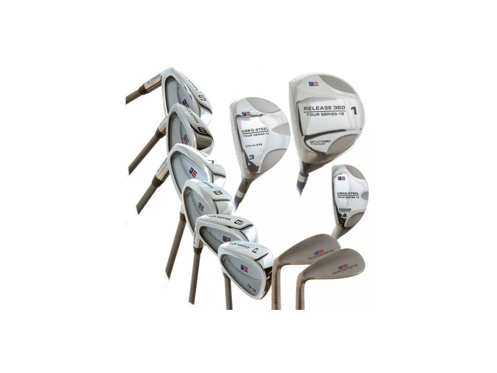 Kompletní golfový set bez bagu, určen pro středně pokročilé a pokročilé hráče výšky 140 až 150 cm s odlehčením 12% proti dospělým holím.